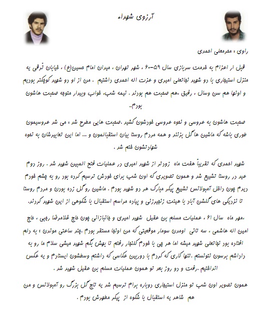 خاطرات شهدای روستای قاسم آباد (شهیدان نجاتعلی امیری و عزت اله احمدی )